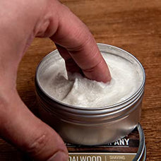 We use real sandalwood essential oil in our all of our sandalwood shaving products to help achieve its signature scent. Our steam distillated sandalwood oil provides you with a rich, warm, woodsy scent while shaving and is a very classic and timeless scent that won't come off as too strong or offensive.